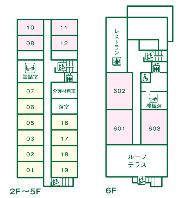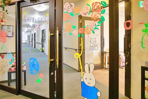 【ショートステイの談話室と居室への入り口(2階~5階)】